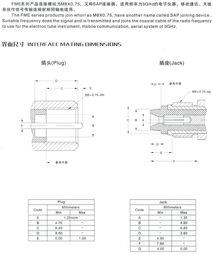 FME、Q6、M5系列射频同轴连接器